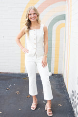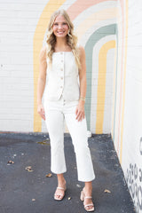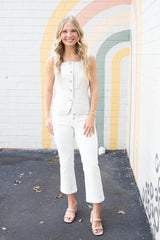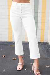 Step up your denim game with the Luna Kick Crop Jean from Sanctuary! These bleached white jeans feature a cropped length, standard rise, and button closure for a stylish look. Plus, the side pockets add convenience to the chic design. Elevate your wardrobe with this must-have denim piece!