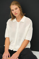 Marley Boxy Crocheted Shirt, White | Plus Size