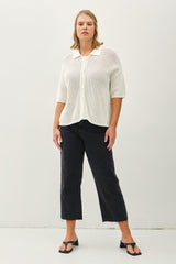 Get ready to rock a playful and stylish look with our Marley Boxy Crocheted Shirt! This white plus size top features a trendy boxy cut, crocheted design, button up front, collared neckline, and short sleeves. Perfect for any occasion, this shirt will keep you looking cool and confident!