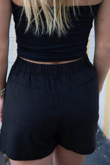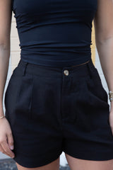 Get ready to strut your stuff in these McKenna High Waist Pleated Shorts! The high waisted design flatters your figure while the pleated details and wide legs add a touch of sophistication. With side pockets and a back elastic waist, these shorts are both stylish and functional. Made with a comfortable linen blend, you'll never want to take them off!