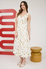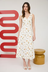 Melina Beach Print Midi Dress, Cream Multi