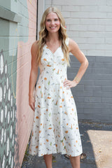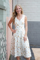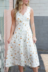 Sway effortlessly from beach to brunch in our Melina midi dress! This cream multi beach print beauty features a flattering V-neck, convenient button-down front, and breezy sleeveless design. The elastic waist creates the perfect silhouette while giving you room to move and groove. Paradise vibes guaranteed!