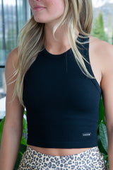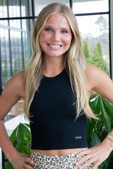 Mia High Neck Tank Bra, Black | Cream Yoga