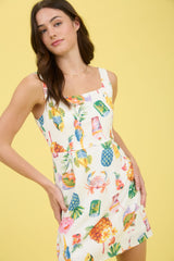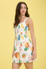 Mia Summer Printed Linen Mini Dress, Ivory Multi