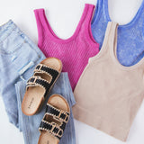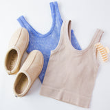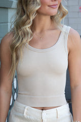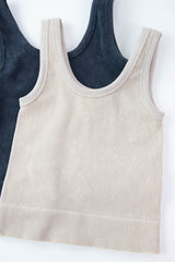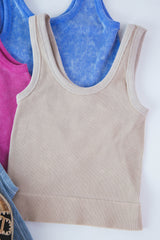 Add some edge to your wardrobe with our Natalia Mineral Wash Tank Top in Khaki. The unique mineral wash gives each top a one-of-a-kind look. Featuring a seamless design, this top ensures maximum comfort and versatility. Get ready to stand out in style!