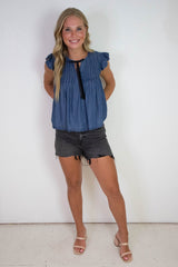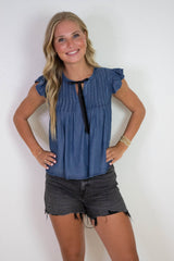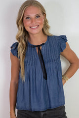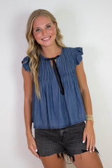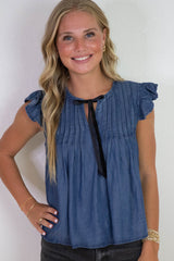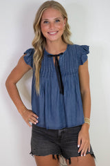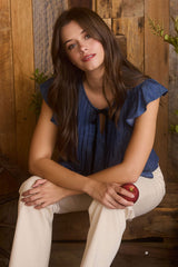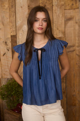 This playful Rayna top features a charming contrast front tie neck that adds a flirty touch to your look. Ruffled sleeves bring a fun, feminine vibe, while delicate pleated details enhance its texture. The split neck design keeps it breezy and stylish—perfect for brightening up any casual day!