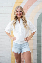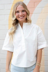 Rebecca Relaxed Popover Top, White | Sanctuary