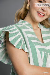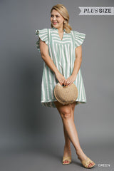 Playfully dance through your day in this charming Reya dress! The eye-catching green stripes and flirty v-neck create an instant mood boost, while flutter sleeves add a touch of whimsy. The mini length shows off your legs, and the frayed hem gives that perfect "effortlessly cool" vibe. Your new favorite statement piece!