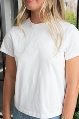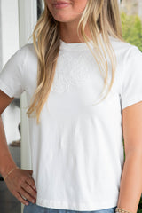Add a touch of whimsy to your wardrobe with our Rosehead Tee in white from Sanctuary. Featuring a crew neckline and short sleeves, this tee also boasts delicate rose embroidery for a unique twist!