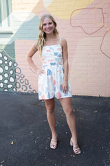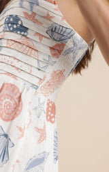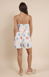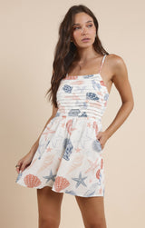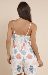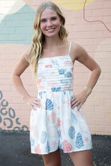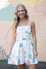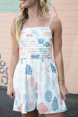 Seashells Pleated Bodice Romper, White Multi | Sadie & Sage