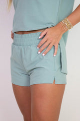 Stay comfy and ready for anything with these playful Shorty Shorts in Marine Mist. Featuring an elastic waist for easy movement, built-in shorts for extra support, and discreet side zipper pockets to stash your essentials. The side slit details add a fun flair, making them perfect for both active days and relaxed lounging!