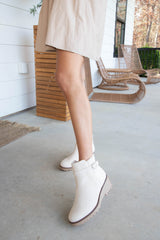 Aeson Knit Back Wedge Bootie, Beige Nubuck