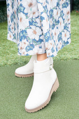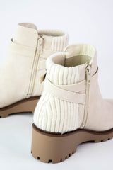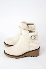Elevate your shoe game with the Aeson Knit Back Wedge Bootie! The cozy knit back adds a unique touch, while the wedge sole provides both style and comfort. Featuring a buckle detail and inner zipper for easy on and off, this bootie is a must-have for any trendy wardrobe!