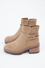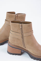 Keep your style on point with these trendy Affirm Lug Sole Booties! The taupe nubuck color and lug sole make for a rugged yet sophisticated look, while the added strap and buckle give you an extra hint of flair. Who knew buckles and boots could look so good?