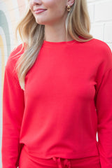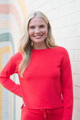 The Airessentials Side Slit Top in Spanx Red adds a fun twist to your wardrobe with its playful side slits and trendy hi-lo hem. Featuring long sleeves and a classic crew neckline, this top keeps you cozy while turning heads. Perfect for layering or wearing solo, it’s a lively way to brighten up your everyday style!