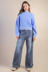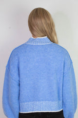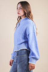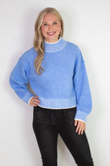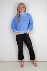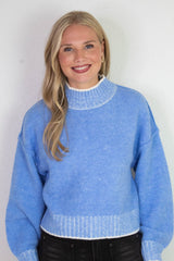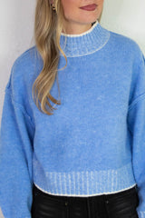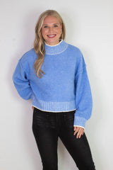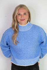This Alice Trim Detail Sweater in blue brings cozy sophistication with a playful touch. Featuring contrasting trim that adds a fun pop of detail, long sleeves for extra warmth, and a chic mock neck, it’s perfect for layering or wearing on its own. The cropped cut keeps your look fresh and modern, making it a versatile piece for any casual or dressy outfit!