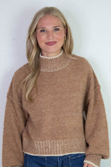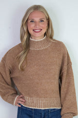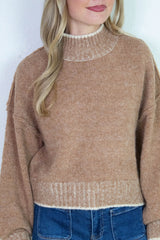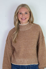 This Alice Trim Detail Sweater in mocha brings cozy sophistication with a playful touch. Featuring contrasting trim that adds a fun pop of detail, long sleeves for extra warmth, and a chic mock neck, it’s perfect for layering or wearing on its own. The cropped cut keeps your look fresh and modern, making it a versatile piece for any casual or dressy outfit!