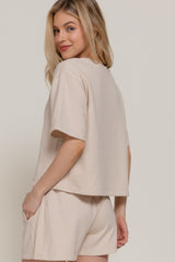 Alison Garment Washed Terry Shorts, Beige