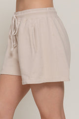 These Alison Garment Washed Terry Shorts in beige bring cozy comfort with a playful twist. Made from soft terry cloth, they feature an elastic drawstring waist for the perfect fit and handy side pockets to stash your essentials. Ideal for lounging or casual outings, these shorts combine relaxed style with everyday ease!