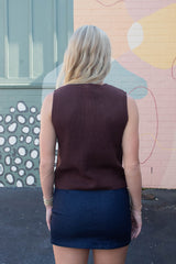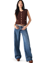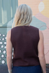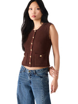 Aliya Gold Button Sweater Vest, Chocolate | Steve Madden
