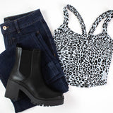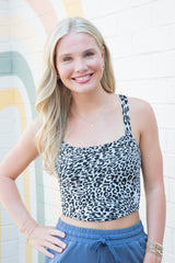 Add a wild twist to your wardrobe with this playful leopard print cami. Crafted from ribbed knit fabric, it features a trendy square neckline and a flattering cropped fit with a round hem. Perfect for layering or wearing solo, this top brings a fun, fierce vibe to any outfit!