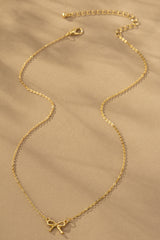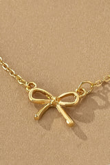 Add a playful touch to any outfit with the Almera Delicate Bow Pendant Necklace. Its dainty design and gold hardware will elevate your look, while the adorable bow pendant adds a whimsical element. Perfect for the fashion-forward individual!