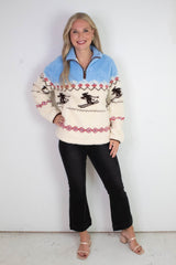 Cozy up in the Alpine Sherpa Half Zip Jacket featuring a fun skier print that adds playful flair to your winter look. With a snug mock neck, contrast trim details, and easy-access side pockets, this jacket blends warmth and style effortlessly. Perfect for chilly days on or off the slopes!