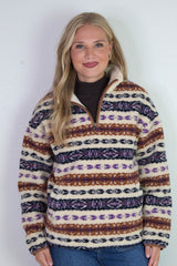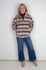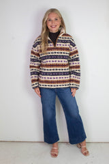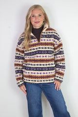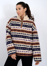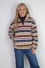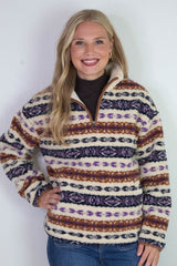 Alpine Sherpa Half Zip Striped Jacket, Tobacco | RD Style