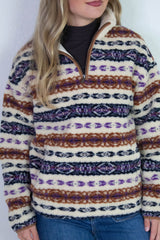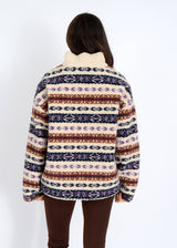 Stay cozy and stylish with the Alpine Sherpa Half Zip Striped Jacket. Its playful striped print and comfy mock neck add a fun twist, while the half-zip closure makes layering a breeze. Contrast trim and handy side pockets bring both flair and function, perfect for your next adventure or chill day out!