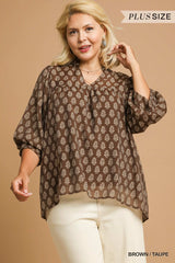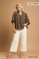 Amaya Floral Block Print Blouse, Brown/Taupe | Extended Sizes