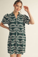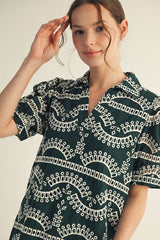 Dance through your day in the Angelica Collared Eyelet Dress! This hunter green beauty combines classic charm with playful details—featuring delicate eyelet embroidery, a sweet collar, and short sleeves perfect for sunshine adventures. The best part? Hidden side pockets for all your little treasures! Who said looking fabulous couldn't be practical too?