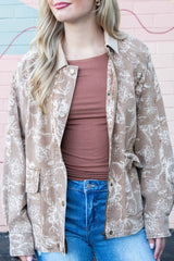 Angelica Corduroy Collared Floral Jacket, Light Brown