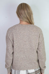 Aria Rib Trim Round Neck Cardigan, Khaki