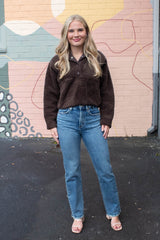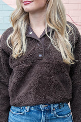 Stay cozy and cool in the Aria Sherpa Button Neck Jacket. This brown jacket features soft sherpa fabric, long sleeves, and a mock neck for that extra snug feel. Snap button closures add a fun twist while side zipper pockets keep your essentials safe and within reach. Perfect for chilly days when you want to look effortlessly stylish!
