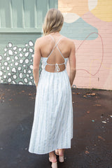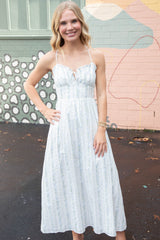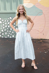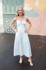 Ariah Floral Striped Midi Dress, White/Blue Floral