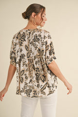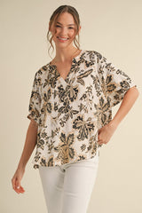 Add a pop of whimsy to your wardrobe with the Ariella Printed Dolman Sleeve Top! The playful print and semi-sheer fabric will keep you cool and stylish, while the short dolman sleeves and split v-neck add a touch of flare.
