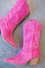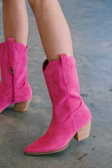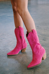 Arisa Mid Calf Faux Suede Boot, Fuschia