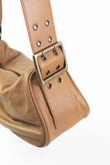 This golden tan Arm Candy Bag from Free People is crafted from soft goat leather for a luxurious feel. Its adjustable shoulder strap lets you wear it just right, while the zipper closure keeps your essentials secure. Inside, an inner zipper pocket helps you stay organized on the go. Perfect for adding a playful yet polished touch to any outfit!