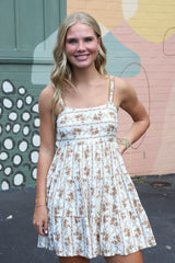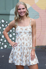 This playful mini dress features a charming mix of stripes and floral prints, perfect for sunny days. Its tiered design adds flirty volume, while the scallop-detailed straps bring a sweet, delicate touch. The sleeveless cut and elastic waist ensure comfort and ease, making it your go-to for effortless style and fun vibes!
