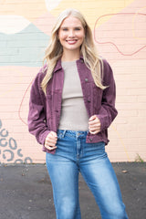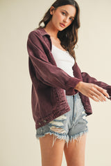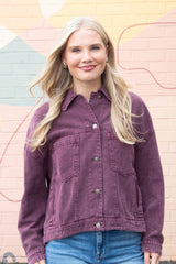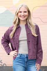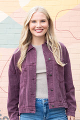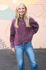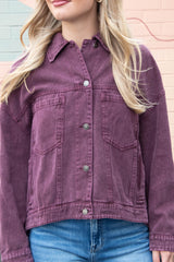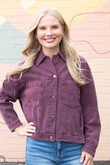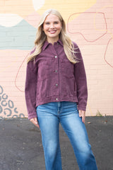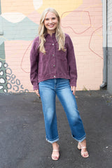 Audrey Button Down Denim Jacket, Cherry Lacquer