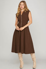 Embrace cozy charm with the Audrey Drop Shoulder Corduroy Dress in warm brown. Featuring a playful V-neck and easy zipper front, this midi-length dress combines comfort and style effortlessly. The smocked elastic waist adds a flattering touch, while side pockets keep your essentials close. Perfect for layering or wearing solo, it’s your new go-to for laid-back days with a dash of flair!
