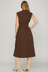 Audrey Drop Shoulder Corduroy Dress, Brown
