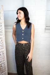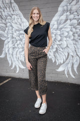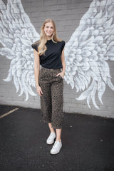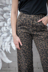 Add some wild flair to your wardrobe with our Aurelie Twill Barrel Pants in Mocha Leopard. With wide leg barrels for a playful touch and a mid rise, these pants are both stylish and comfortable. Made from twill denim and featuring double side pockets for added convenience, roar with confidence in these statement pants!