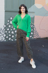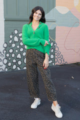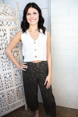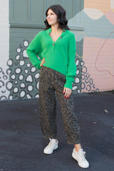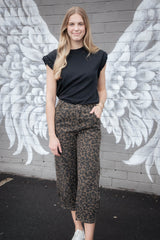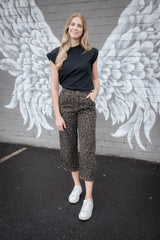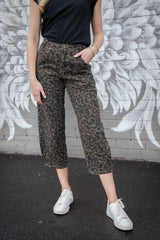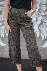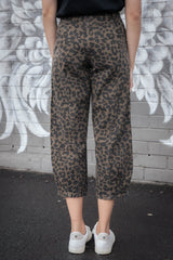Aurelie Twill Barrel Pants, Mocha Leopard
