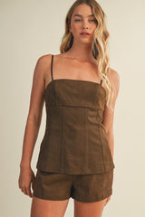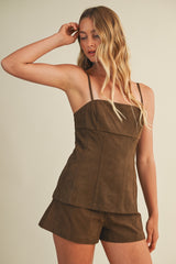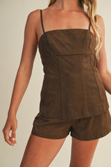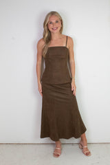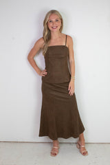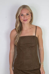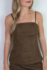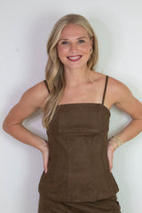 This Autumn Square Neck Suede Top in Dark Oak blends cozy suede warmth with a flirty square neckline and adjustable spaghetti straps for the perfect fit. Seam details add subtle charm, while the side zipper closure ensures easy wear. Get ready to turn heads with a look that’s as comfortable as it is stylish!