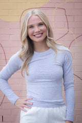 Stay cozy and stylish in the Avery Thermal Top by Cream Yoga. Featuring long sleeves and a double-layered design, this heather gray round-neck top keeps you warm without compromising comfort. Perfect for layering or wearing solo, it’s your go-to for cool days with a playful twist!