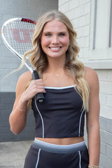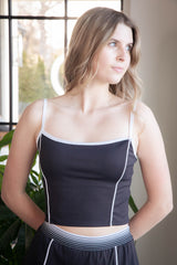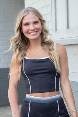 Rock this Baseline Top with contrasting white details for a sporty and stylish look. Featuring built-in support and adjustable spaghetti straps, this cropped top is perfect for all your on-the-go needs!