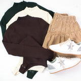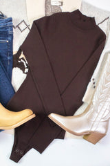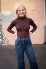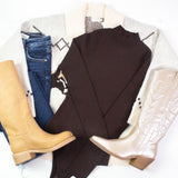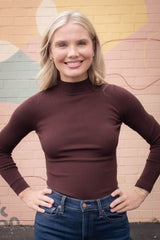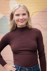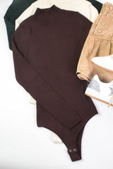 Elevate your style with the Bella High Neck Ribbed Bodysuit in Brown. This playful piece features a cozy high mock neck and a flattering ribbed knit texture that hugs your curves. Snap button closures make dressing a breeze, while long sleeves add a touch of elegance and warmth. Perfect for layering or wearing solo, it’s your new go-to for effortless chic!