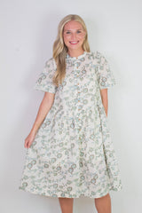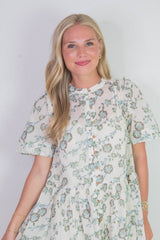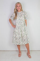 Step into sunshine with the Bella Mae Midi Dress in Tea Combo. This playful floral print dress features charming pintuck and ruffle details, a breezy round neck, and short sleeves perfect for warm days. The button-down front and handy side pockets add both style and convenience, while the inner lining ensures comfort all day long. Whether you're out for brunch or a garden stroll, this midi dress brings effortless charm to your wardrobe!