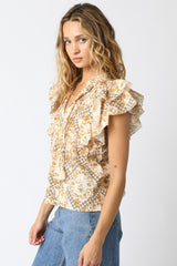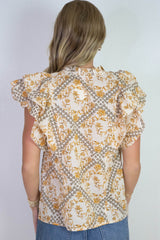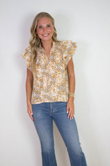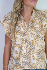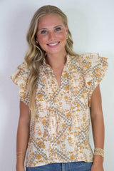 This Bellamy blouse brings a playful touch to your wardrobe with its delicate pintuck details and charming tie neck. The ruffle accents add a flirty flair, while the natural multi print keeps it fresh and fun. Perfect for brightening up any day with effortless style!